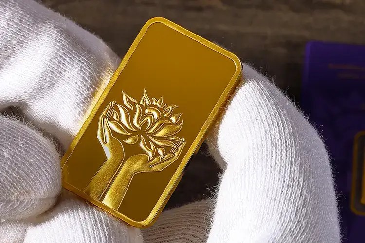 The “MMTC Gold series” refers to a range of gold products, primarily coins and bars, from MMTC-PAMP that are characterized by their high purity (999.9+ or 24K), Swiss craftsmanship, unique designs often inspired by Indian heritage (like the Lotus motif) providing a blend of investment and emotional value.